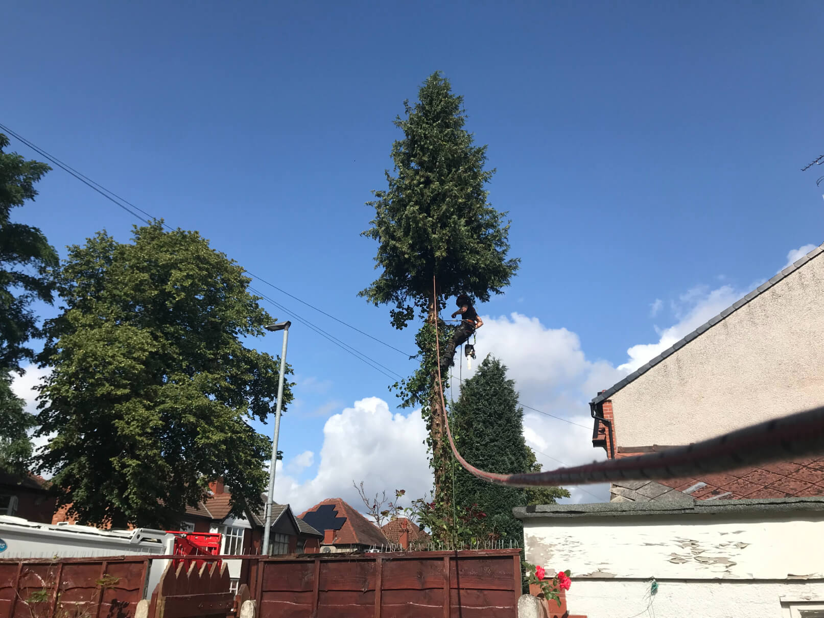 In 4th of September our Manchester tree surgeons were booked for a complete conifer tree removal job in Chorlton, Manchester.