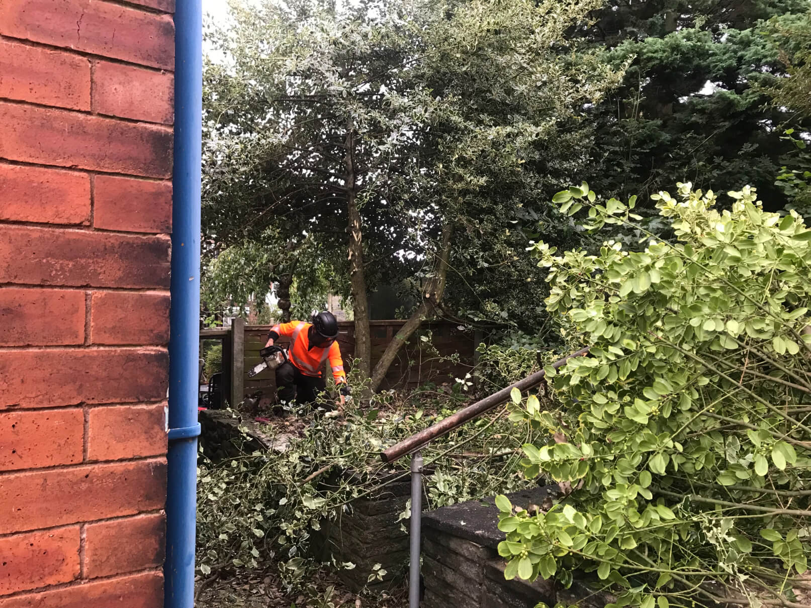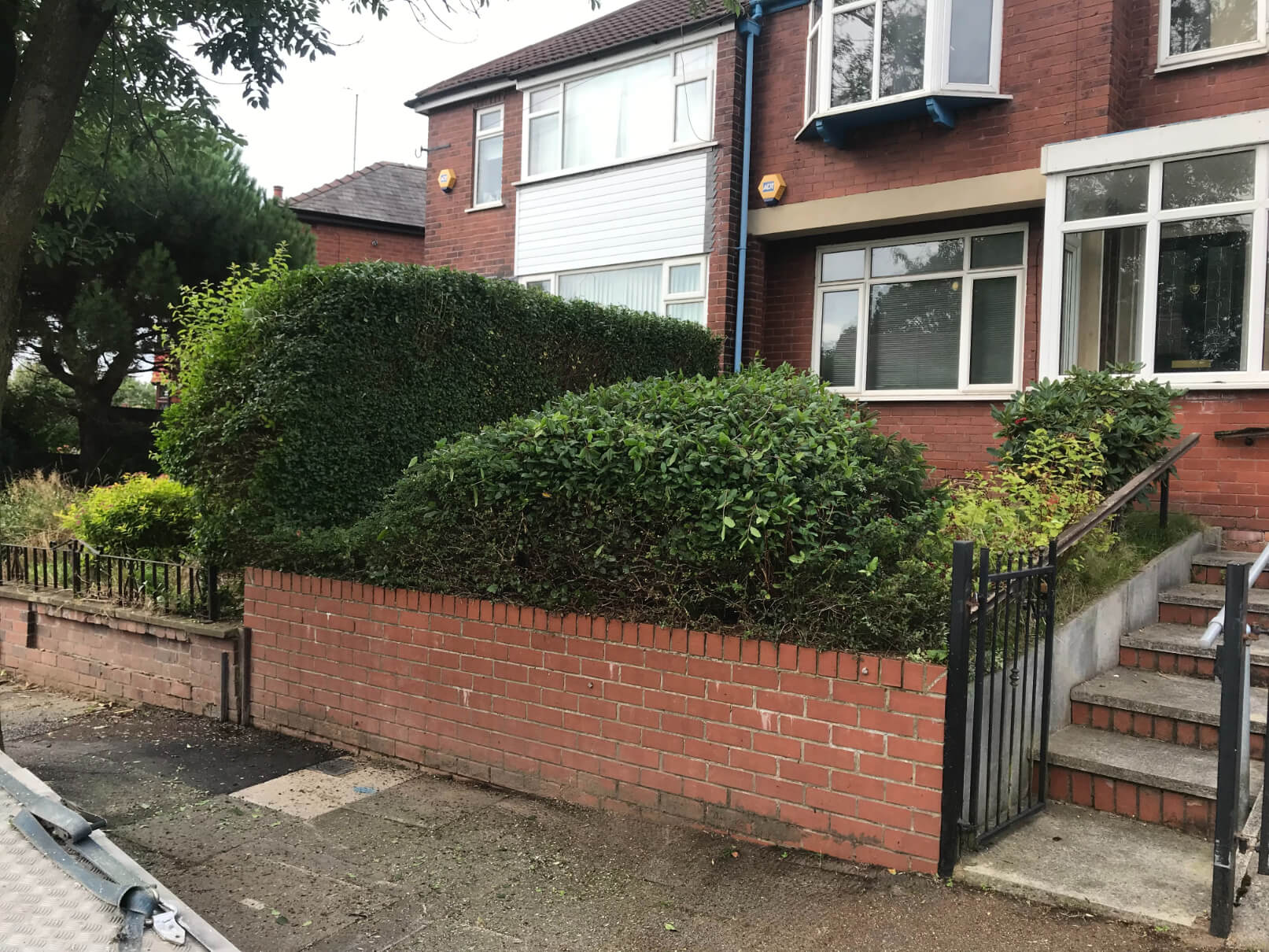 Few days after five London plane tree felling job for a Trafford park hotel, our Manchester tree surgeons were booked for a job in Prestwich, Manchester for a garden clearance and small hedge trimming.