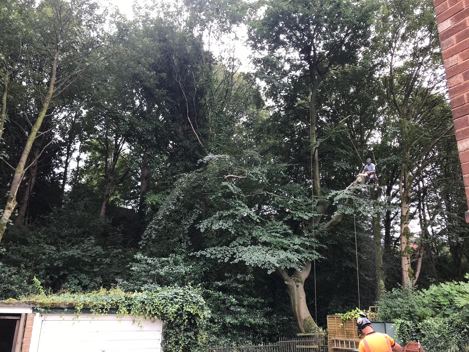 This time our Manchester tree surgeons are removing large sycamore in Prestwich, Manchester – 01.08.2019.