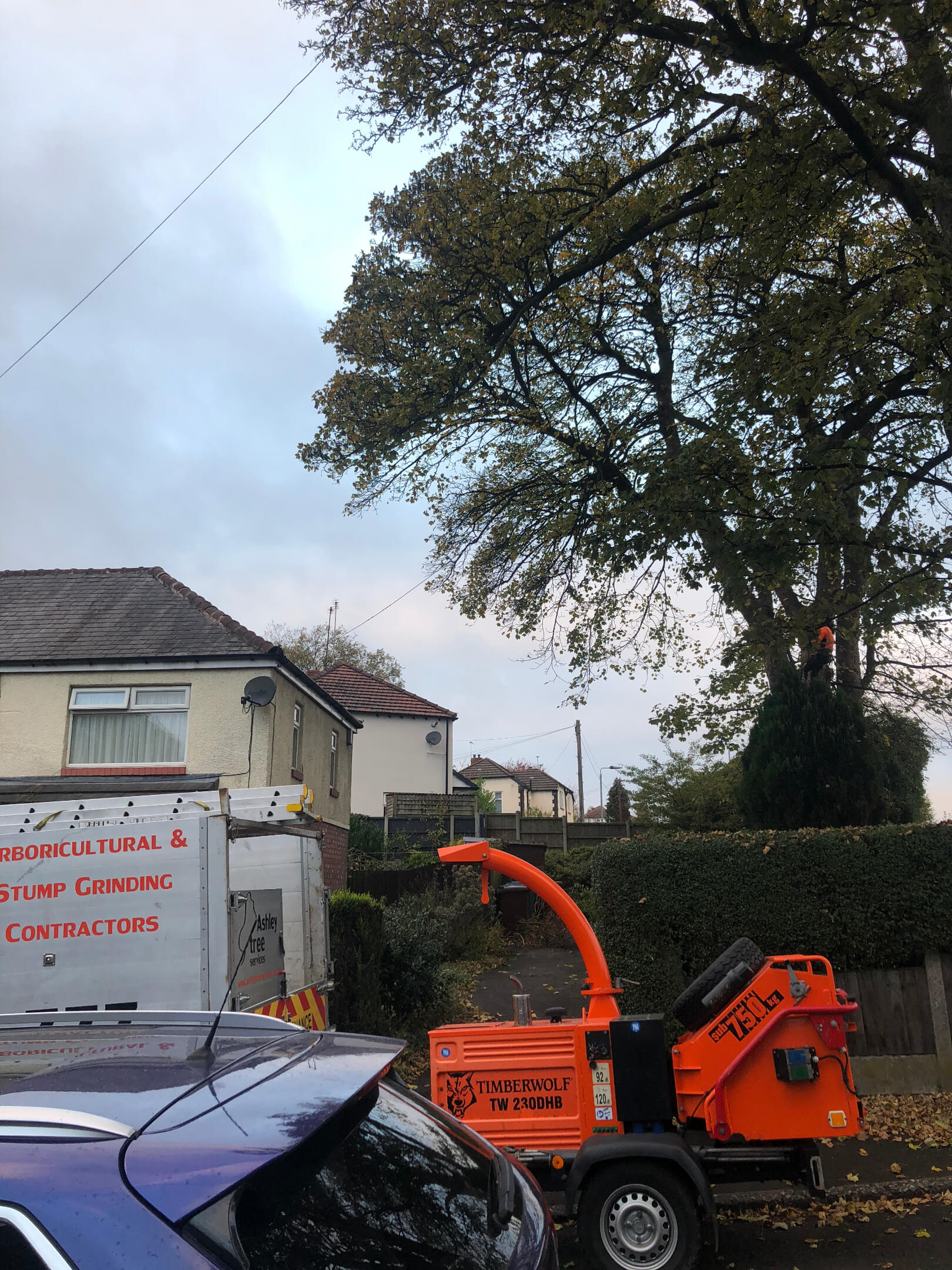 Ashley Tree Services doing a major crown lift in Prestwich, Manchester