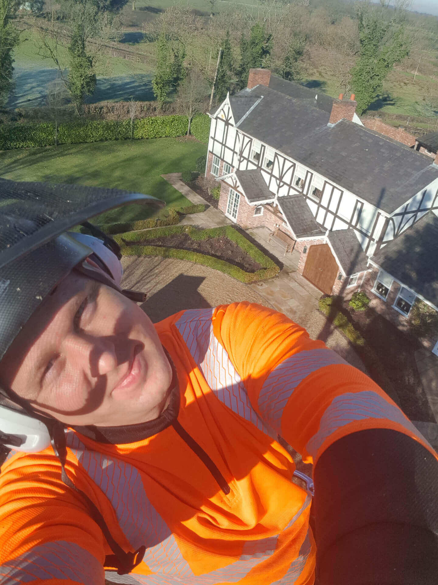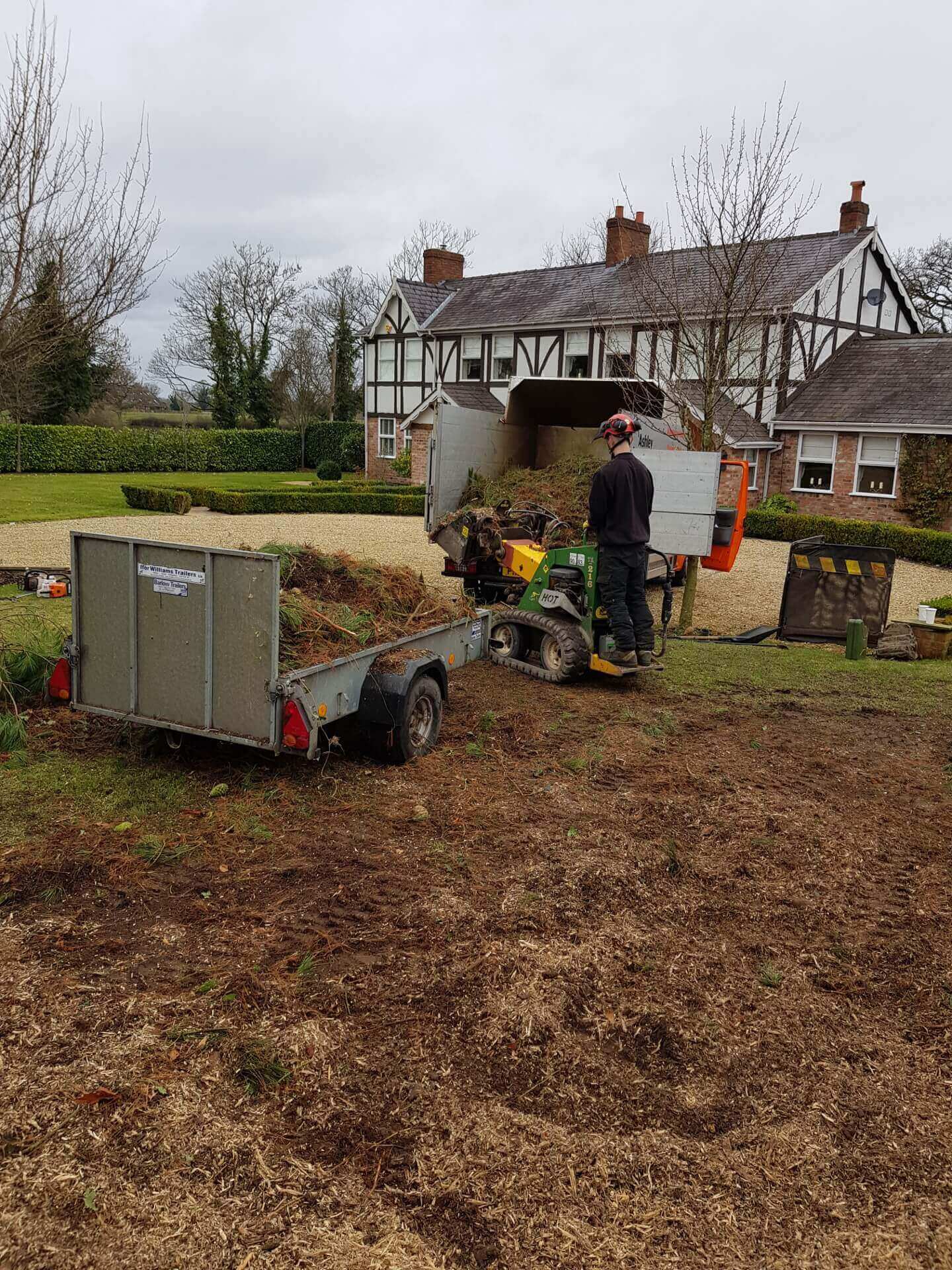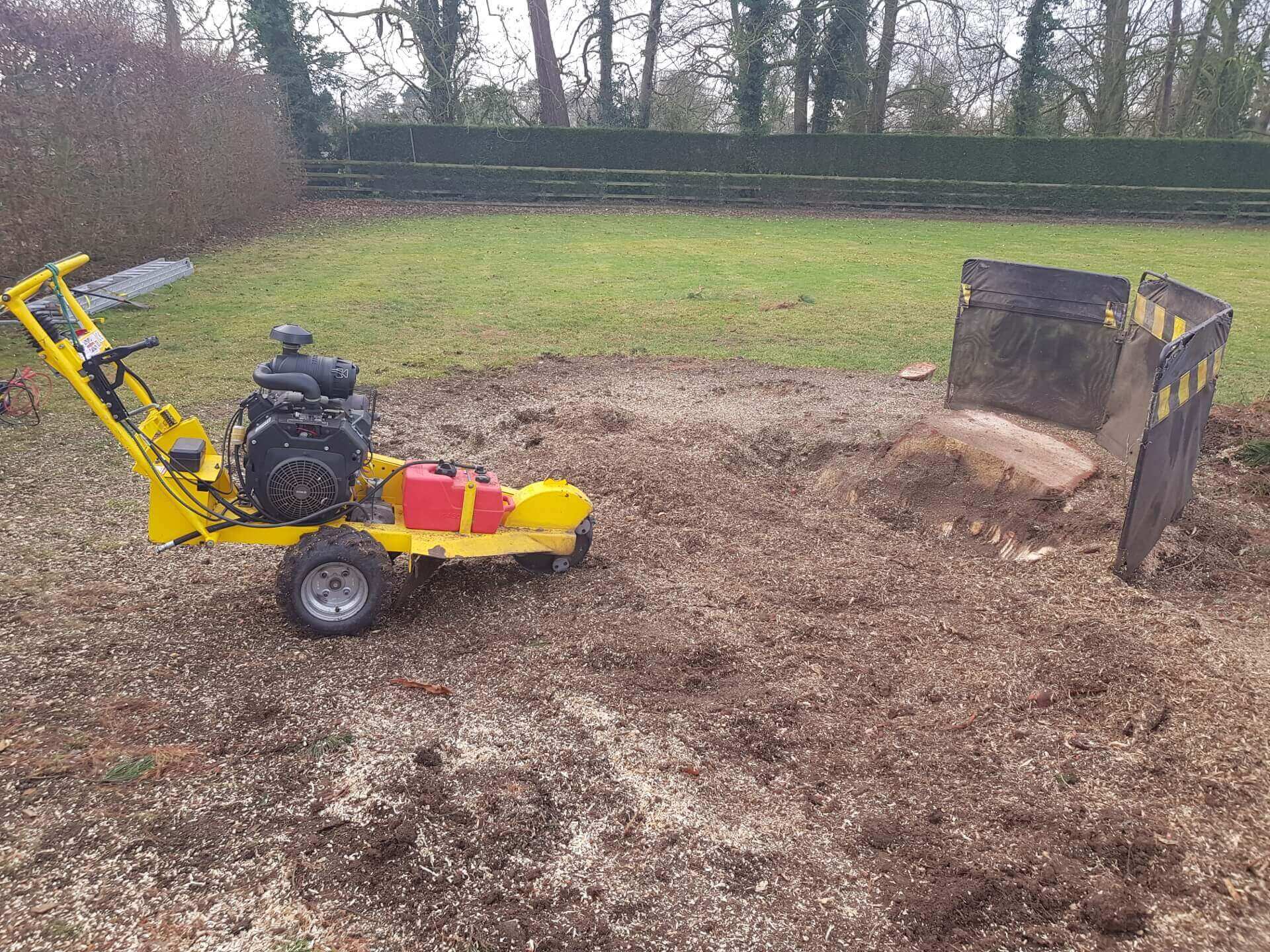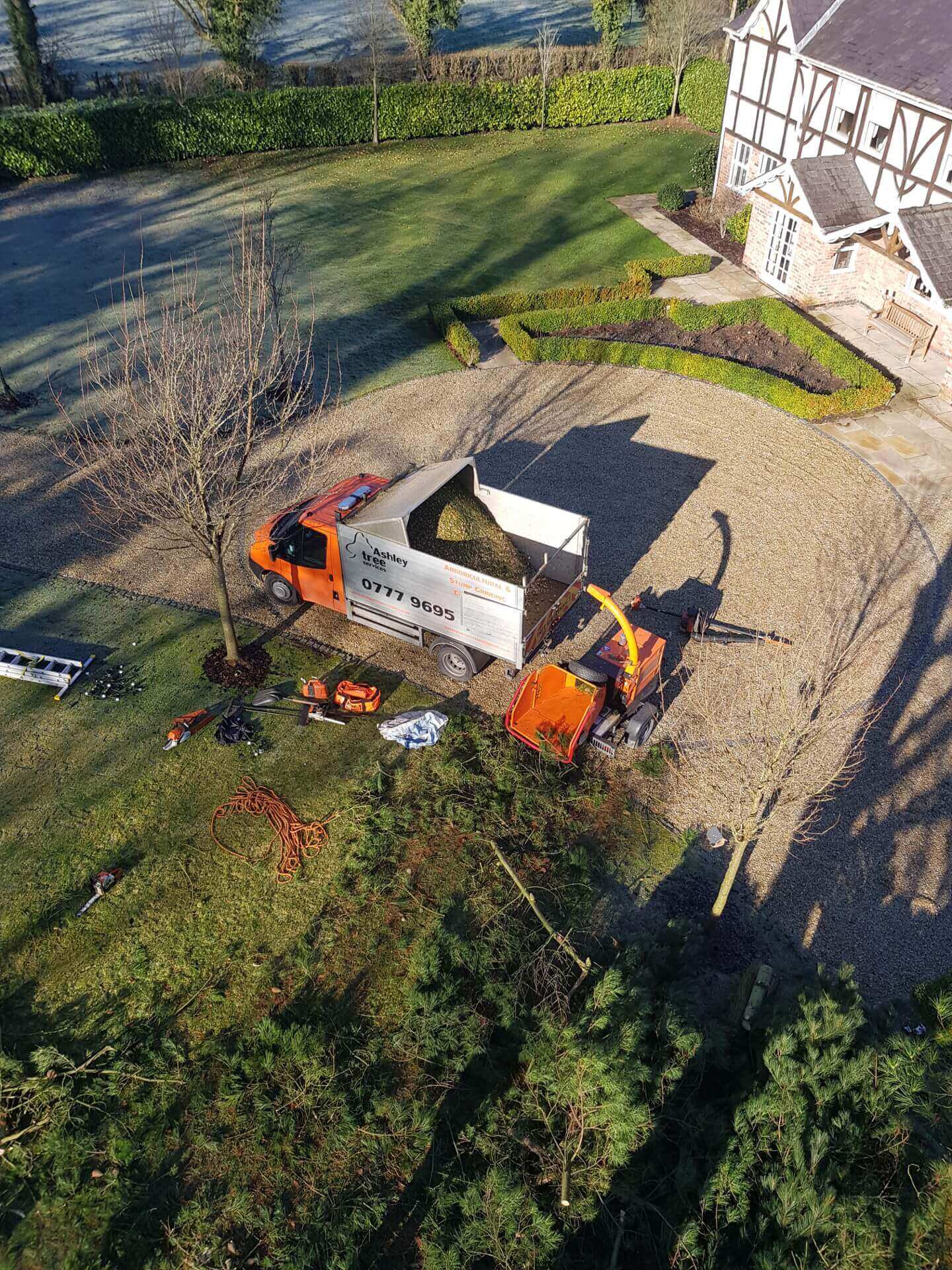 Ashley Tree Services received a call from Mobberley, Cheshire with a quote request for felling a large pine tree and removing stump for future landscaping and leaving no trace of root system.