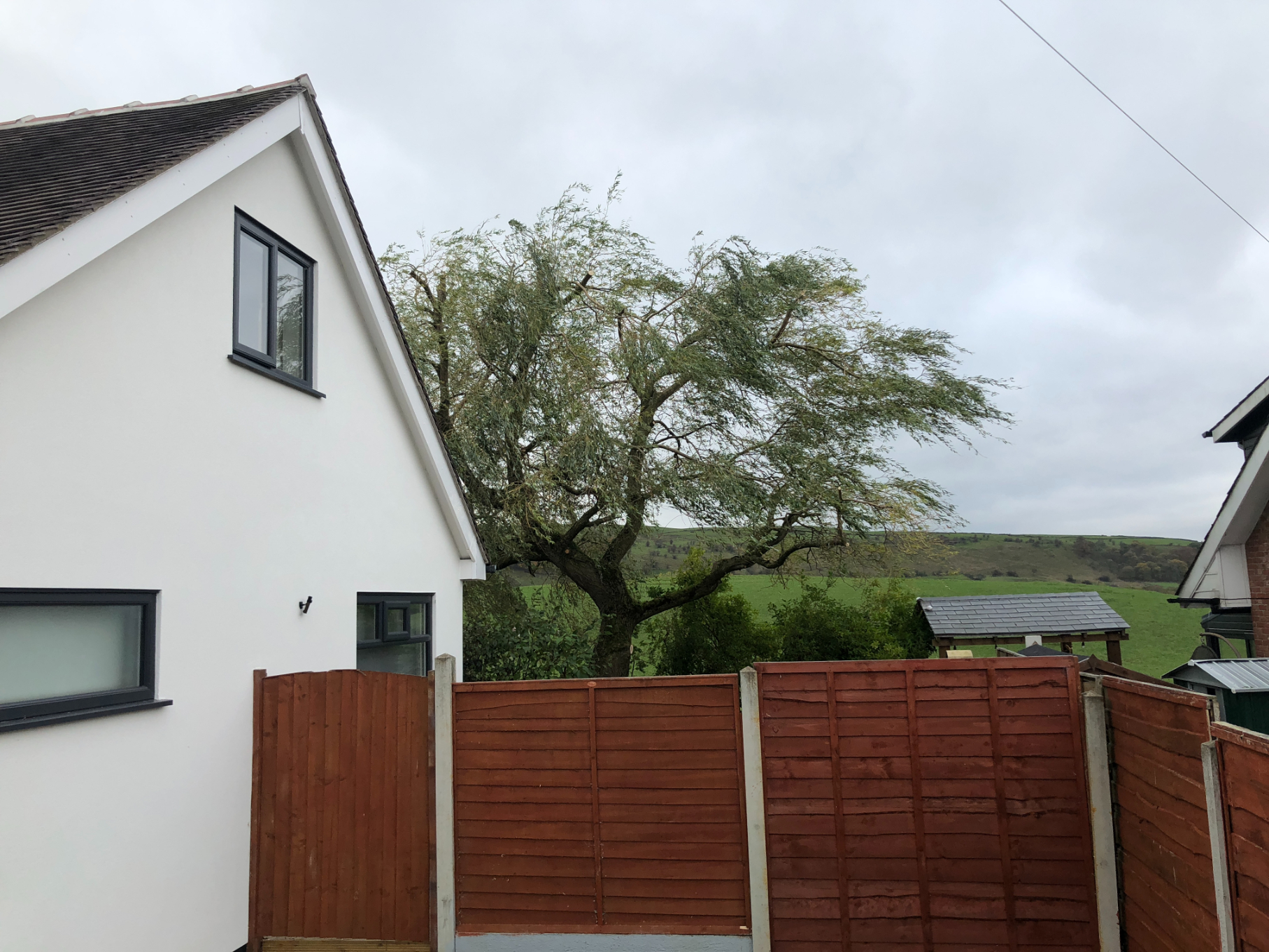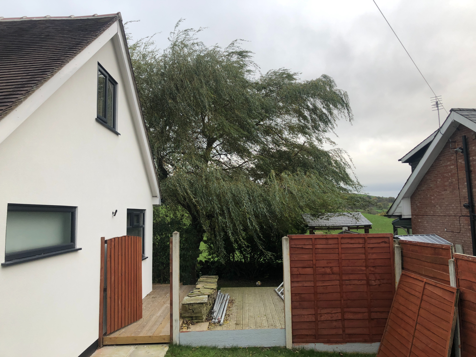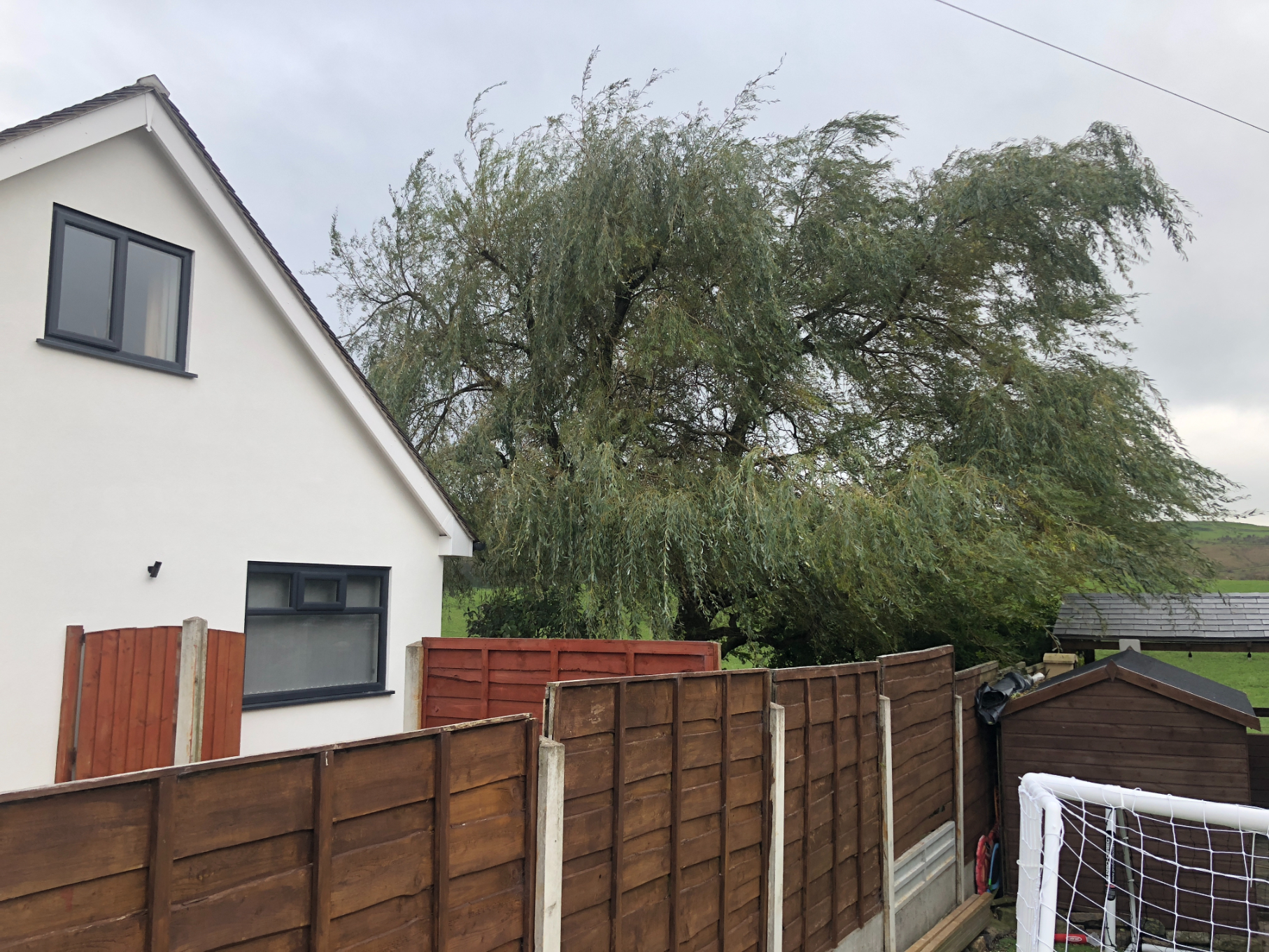 Owner asked to take reduce the willow tree. It was overgrown and it was hard to oversee the garden. You can see in the last images that reducing the willow tree has improved the natural light the yard receives and makes it easier to oversee the property.