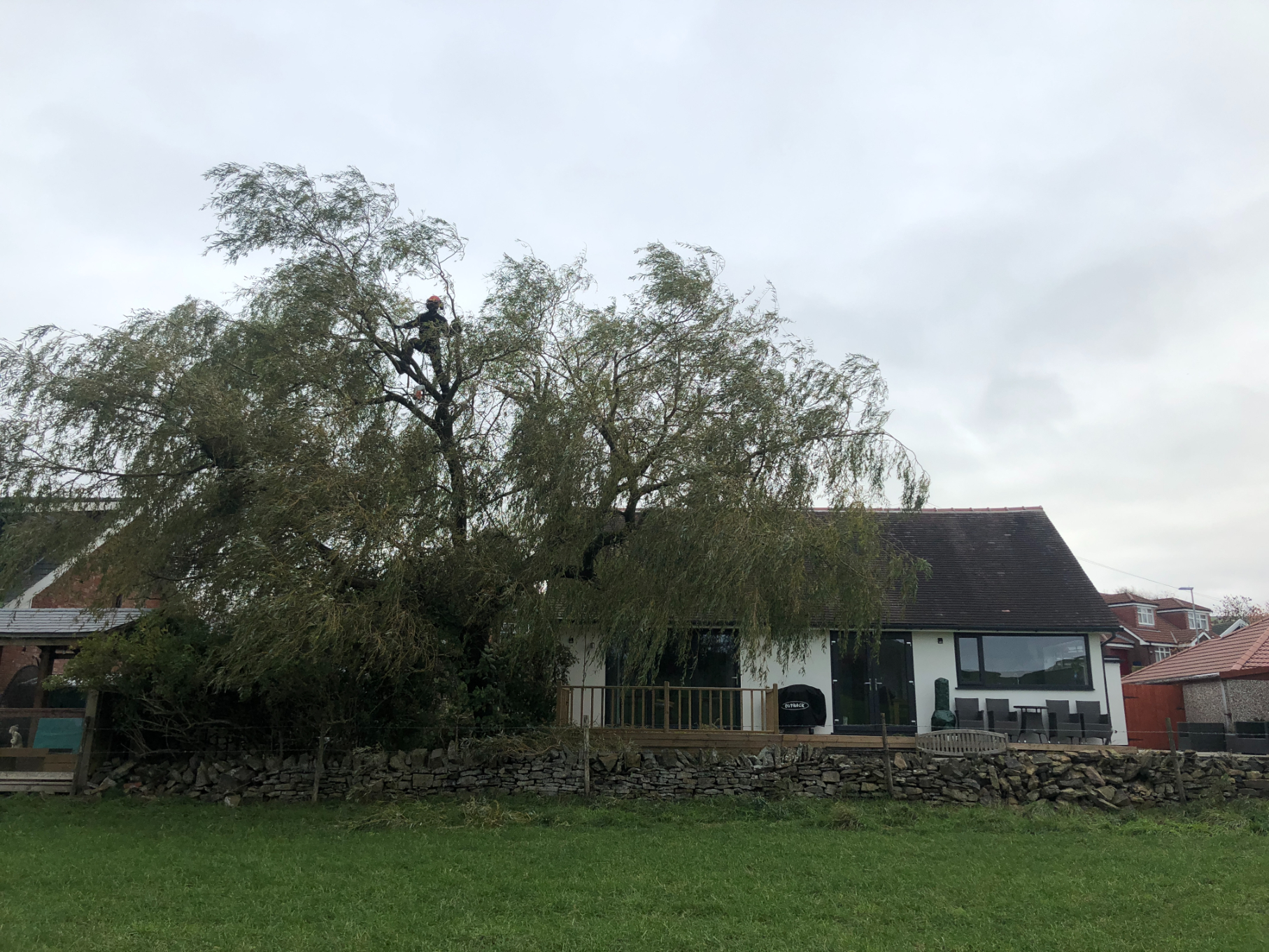 One of our Manchester and Cheshire tree surgeons doing a crown reduction for this willow tree in Oldham, Manchester on 03.11.2018.